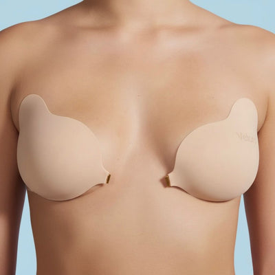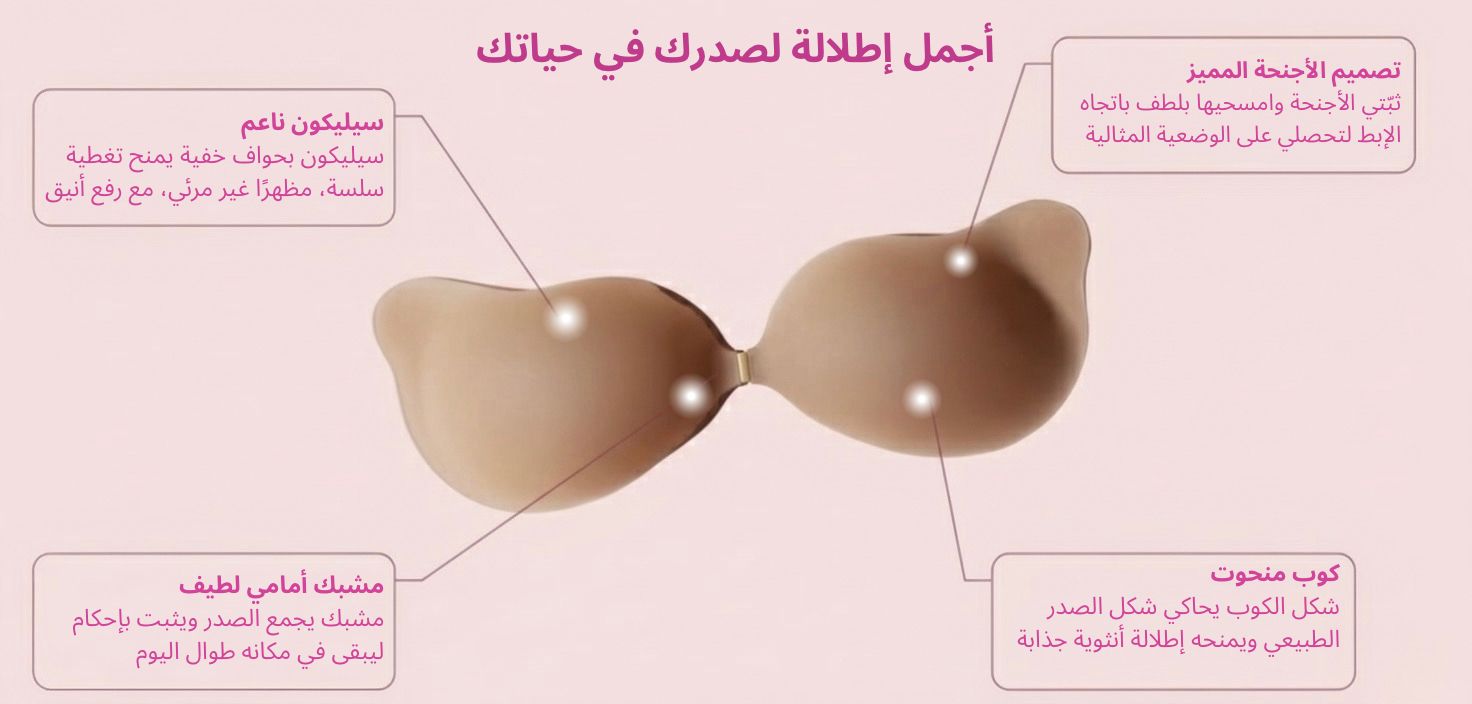 ابدَي من جهة الجناح واضغطي شوي شوي عشان يلتصق الكوب مضبوط على صدرك. لا تحاولين تعيدين التثبيت بعد ما تلصق، عشان تحافظين على قوة اللاصق.
